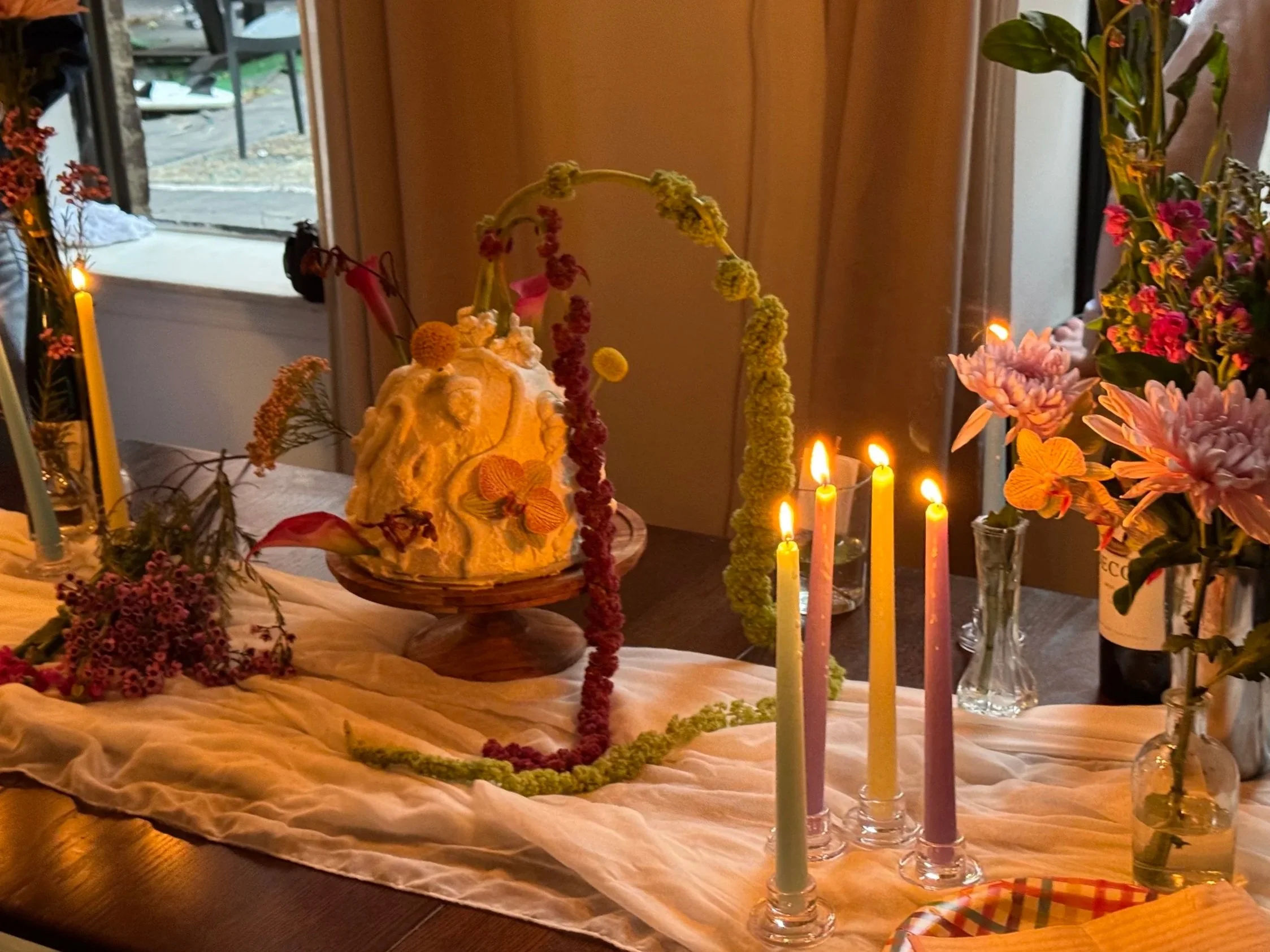 CONCEPTFiori & Bollicine is a birthday aperitivo built around the idea of enjoying the pause before dinner, taking in the golden hour and enjoying a chill glass of spritz. We picked this theme because spring had just arrived (or so we had thought...) and the terrace was finally warm enough to be on again. The palette follows the season: aperol blush, petal pink, elderflower lavender, hugo mint -- colors that make you feel young again. The whole theme was meant to feel playful with a lot of flowers and the best hour of the day stretched out as long as possible.